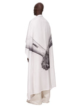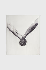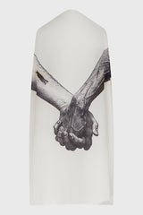 Flag in milk/black silk from Rick Owens ss25 Hollywood runway. This flag is square shaped and features the united hands print. It measures 150cm x 150cm, and is sold without the flag pole.