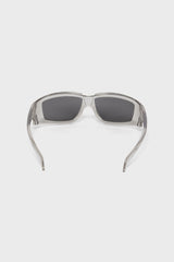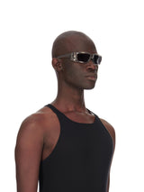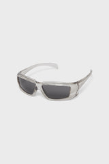 Sunglasses Rick from Rick Owens. It features a double injection Japanese transparent nylon frame and black lenses. This frame is memory flex. This black lens provides a high level uv protection.