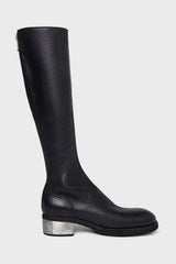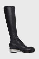 Black soft horse full grain knee length boots with metal heel from Guidi.
