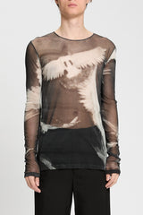Greg slim fit long sleeves t-shirt in doves printed tulle from Ann Demeulemeester.