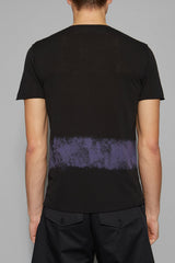 Black cotton short sleeve knitted t-shirt from Isabel Benenato, featuring deep purple bleach effect as well as ‘broken’ neckline.