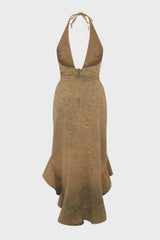 Ibiza dress from MISBHV, with Dyeing and fading throughout, Deep neck, Elongated back finished with flounce, Tied at neck, Open back and Back zip closure.