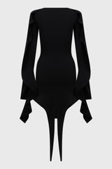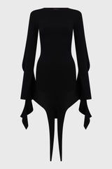 Asymmetric knitted dress from Mugler, it has long sleeves and boat neckline.