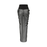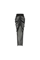 Black chiffon paneled gathered skirt is made of light weight and transparent chiffon panaled with rib fabric, matching with natural drape and yet loose fit pattern. The see-through chiffon, which is rich in texture, soft and flowing, adds visual subtlety, and adapts to more circumferences. Overall design is fashionable and versatile.