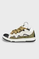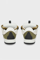 from LANVIN. Curb Trainers in grey suede and leather, pull tab on upper tongue, perforated upper toe, leather insert detail, contrast laces, engraved logo, bicolour rubber sole