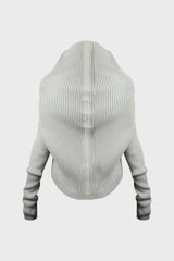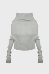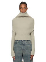 Longsleeve cowl in dust wool from Rick Owens AW25 Concordians runway. This ls cowl is waist length at front, dipping slightly longer in back. It features a draped tubular neck that widens over the shoulders creating a short fitted body with long slim sleeves. It has a signature knit channel down the spine.
