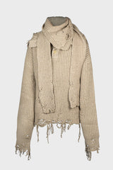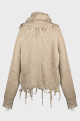 Oatmeal distressed turtleneck sweater from Sean Suen.