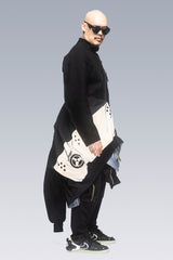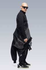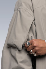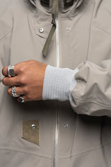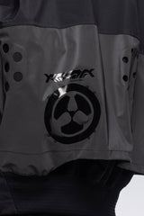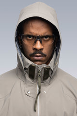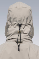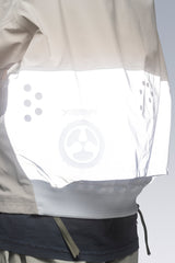 J110’s oversize shape and variable stage center front closure accommodates myriad body types and layers. Detached entry shoulder pockets and bilateral front pockets provide ample storage. The side elevation of the jacket reveals double rows of Tec Sys webbing for customisation. The back of the jacket features a perforated retroreflective skirt with a high-gloss logo application. Sleeve cuffs and rear hem are in Gore-Tex dimensional flex laminate. The jacket itself is fully taped 3-layer Gore-Tex Pro and Guaranteed to Keep You Dry™.