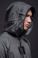 Speed freak. J118-WS weighs in at an almost imperceptible 170g (not including removable parts). Enabler of this feat is the exceptional Windstopper® Active Shell™ membrane: windproof, water repellent, highly breathable, compressible, and ultralight to degrees previously impossible. J118 packs into its own stow pocket which can be slotted to TEC SYS webbing, docked via carabiner, or slung via Jacketslingæ. Sleeve anchor cuffs and the storm hood keep you protected at speed. Jacketslingǽ with spike tape and Storm Hood with full coverage facemask push J118’s lightness and immateriality into the visceral.