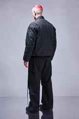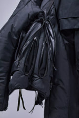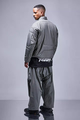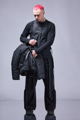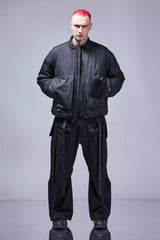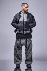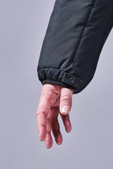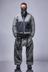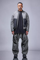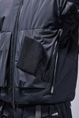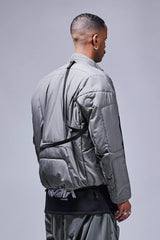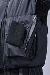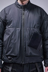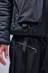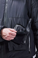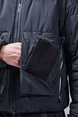 All articulated everything. J91A-WS is a maximalist front-loaded bomber jacket built to exceed alone or paired as a modular liner. A twin set of large dual-entry mid-level chest pockets serve as the jacket's central storage hub, and feature medial entry TensionZipǽ closures for full access. Chest pocket configuration and placement allows multiple paths to contents; anatomic when J91A is worn solo, as a liner inside another jacket, or while hanging from a JacketSlingǽ. An asymmetric peripheral pocket adds literal storage depth to the array, and all pockets, including the internal sleeves and the external webbing loop for further attachments, remain accessible in all donned positions. Separate bilateral WR TensionZipǽ lower pockets complete the storage options. DFMA pattern engineering ensures the jacket remains light, fast, and responsive despite all of the above.