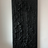 Paintings by Sade English, Founder and director of Anticlone Gallery. a three serires of paintings, each 1 of 1. Sade states the numbers signify ancestral dates of transitioning diapsora, death, rebirth and evolution. Acrylic, foam, and sand used