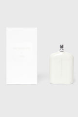 The packaging is made up of different textures and shades of white, off-white and ecru: The 100% cotton canvas of the protective bag. The glass of the perfume bottle, reminiscent of antique porcelain. The leather of the brand's identifying label. The magnetised and reinforced box