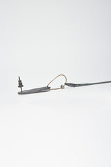 Black ear stud (single) from DETAJ x UMA WANG, featuring with black silver plate, 10K gold hoop, grey diamond and long silver chain