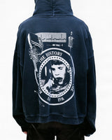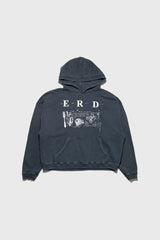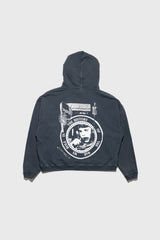 Long-sleeve pullover hooded sweatshirt made of heavy weight brushed french terry in charcoal from . Boxy, drop-shoulder fit. Double layer hood. Rib knit cuffs & waistband. Printed artwork at front and back. Signature vintage wash process.