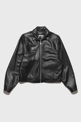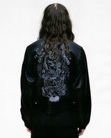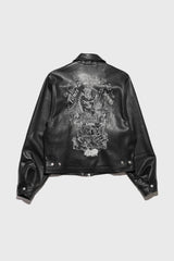 Zip-front jacket in lamb leather from Enfants Riches Déprimés. Viscose-twill lining. Spread collar. Western yoke at front. Welt pockets at front waist & interior. Barrel cuffs. Logo-branded metal zipper. Branded metal snaps at wrist and adjustable back waist tabs. Embroidery at collar points and back.