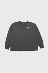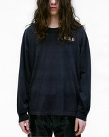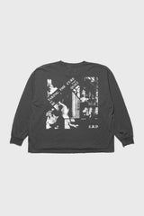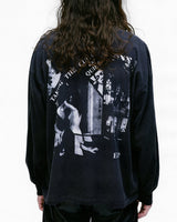 Long-sleeve t-shirt in heavy weight cotton jersey in faded black from Enfants Riches Déprimés. Longer, drop shoulder fit. Rib knit neckline and cuffs. Single stitch hem at waist. Printed artwork at front, back, and sleeve. Signature vintage wash process.