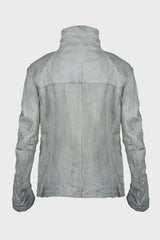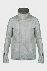 Horse white leather high neck lagran darts shoulder blouson lined JB-5S in dirty light grey from Incarnation.