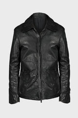 Horse leather shirt collar zip blouson o/p arm w/pkt lined in black from Incarnation.