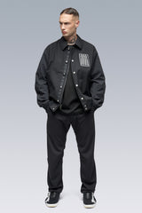No school as school. No team as team. J94 is only the second time Acronym has interpreted the varsity jacket and this time the visual cues are all that remain. On a technical level, this is on another level. 3-layer composite body and sleeve fabrics means the jacket weighs in at just over 500 grams. Fully taped construction means wind and water invulnerability and true all season use. Dimensional flex laminate hem and cuffs mean the slickest possible care-free closures are also breathable and waterproof. 2 stage centre front closure means one hand and snap for convenience, or 2 hands and zip for a complete weather seal. Jacketsling means you can stop thinking about it when you stop wearing it. Chenille 'Wildcard' graphic on left chest (no letter as letter) and 'delta-Ǎ' embroidery on cuff. Pair with FC3-GT for complete wet weather protection.
