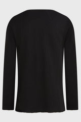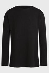 Distortion one-piece long tee in black hand-knitted Mongolian 12 Gauge Cashmere from Leon Emanuel Blanck.