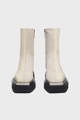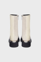 Unisex combo combat boots with metal tips in beige suede and nappa leather from Peter Do.