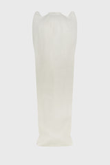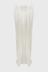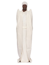 Hollywood cape in dinge linen twill from Rick Owens ss25 Hollywood runway. This long tec cape trails floor length. It features tec shoulders that raise into points. It has a minimal raised collar and an open centre front that falls to the floor, tapering into a train behind. It is fully lined with two internal zippered pockets.