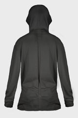 This oversized ls hoodie is hip length with long sleeves. It has a hood, ribbed cuffs and hem and a signature knit line running down the center back spine.
