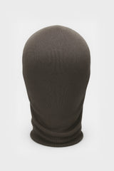 Darkdust skull balaclava from Rick Owens. This skull is a balaclava that covers the head and neck with a wide rounded opening for the eyes and nose. It has a wide ribbed neck.