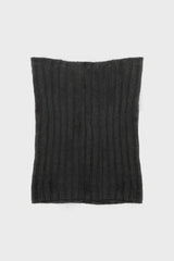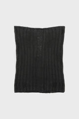 Tube scarf in darkdust boiled recycled cashmere knit from Rick Owens. This tube scarf is a rectangular tube shape, it can be worn around the neck or up around the head. It features a signature knit line running down the centre back.