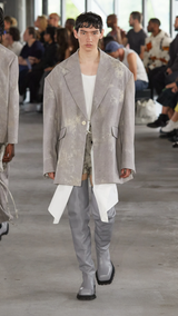 Bundle dyeing blazer in grey from Sean Suen.