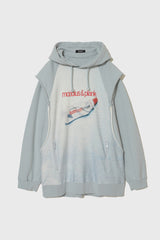 Cotton sweatshirt layered hoodie from UNDERCOVER, it has print featuring artwork by German artists Moebius & Plank, Zip pocket on front.
