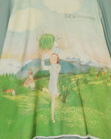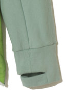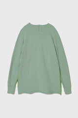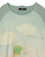 Pullover in peppermint from UNDERCOVER. featuring cotton epaulette sleeve cut and sew, Print featuring artwork by German band FAUST, Zipper pocket on front, Raw neck and hem and Thumb holes.