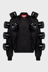 Exoskeleton bomber jacket with removable blow-up hoops from Walter Van Beirendonck.