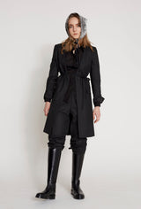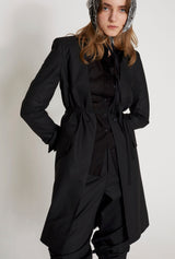 Women's long coat from MICHAL LESZUK, featuring a slim fit, long length, collarless, single-button closure.