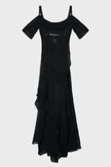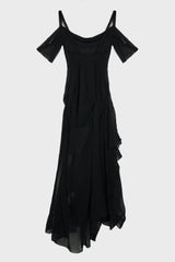 Gabrielle maxi dress from MISBHV. It is a Fitted maxi dress in black, Slightly sheer, Gathering throughout.