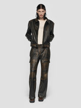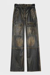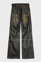 Vintage leather moto pants from MISBHV. It has Unique treatment throughout, Straight-cut, Five-pocket styling and Zip fly closure.