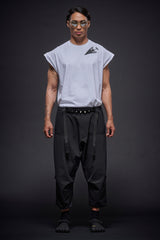 Updated Acronym archetype. P17 is a loose cut, 3/4 length, integrated web belt trouser. Acronym pattern science means optimal motion. DEEPæ pockets mean optimal storage. QLQRǽ web waistband cinches down from oversize. For optimal results remove spike tape before hugging your significant other.