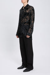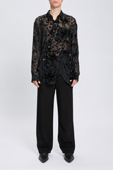 Mark high comfort shirt in black velvet devore from Ann Demeulemeester.