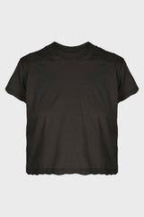 Cropped small level t in darkdust cotton gauze jersey from Rick Owens DRKSHDW  FW25 Concordians. This cropped small level t is above hip length with a semi-fitted cut, short sleeves and a ribbed crew neck. It features signature front level shoulder seams and a centre back seam.