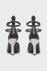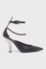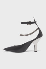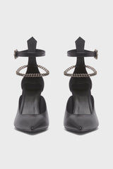 Calf leather heels in black. Adjustable pin-buckle ankle strap. Metal kitten heel. Leather sole.
