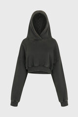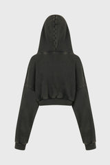 Cropped Heavy Hood Hoodie from Entire Studios, with heavy enzyme wash, waist pouch pocket.