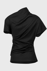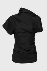 Flop top in black from Entire Studios. It is a draped top with pleat detailing, form fitted and YKK invisible zipper.