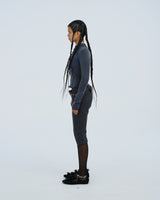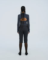 Capri pants with silver charm bag in grey from Hyein Seo.