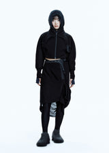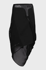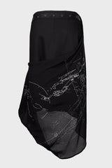 Graphic wrap skirt with garter belt from Hyein Seo. Wrapped in a mesh layer with glow-in-the-dark graphic print, Secured with a garter belt decorated with eyelets, Zipper on the front side, Logo rubber label embellishment.