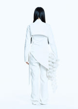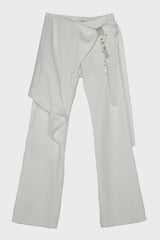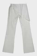 Wrap pants in Ivory from Hyein Seo. Attached drapery wrap panel layer, Embossed logo rubber trim detail.