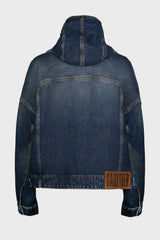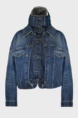 Double layer denim jacket with hood detail from Jean Paul Gaultier.