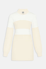 Lambswool ribbed long sleeves short dress with mesh cut out details from Jean Paul Gaultier.