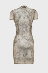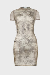 Mesh short dress printed "Médaillon" in Lightbeige/taupe from Jean Paul Gaultier.