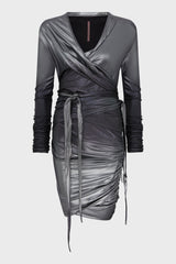 Emma longsleeve mini dress n silver degrade glossy viscose jersey from Rick Owens Lilies FW23 Luxor.
