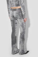 Velour sweatpants from MISBHV, with low-rise, flared leg, elasticized waistband and crystal-cut logo at back.